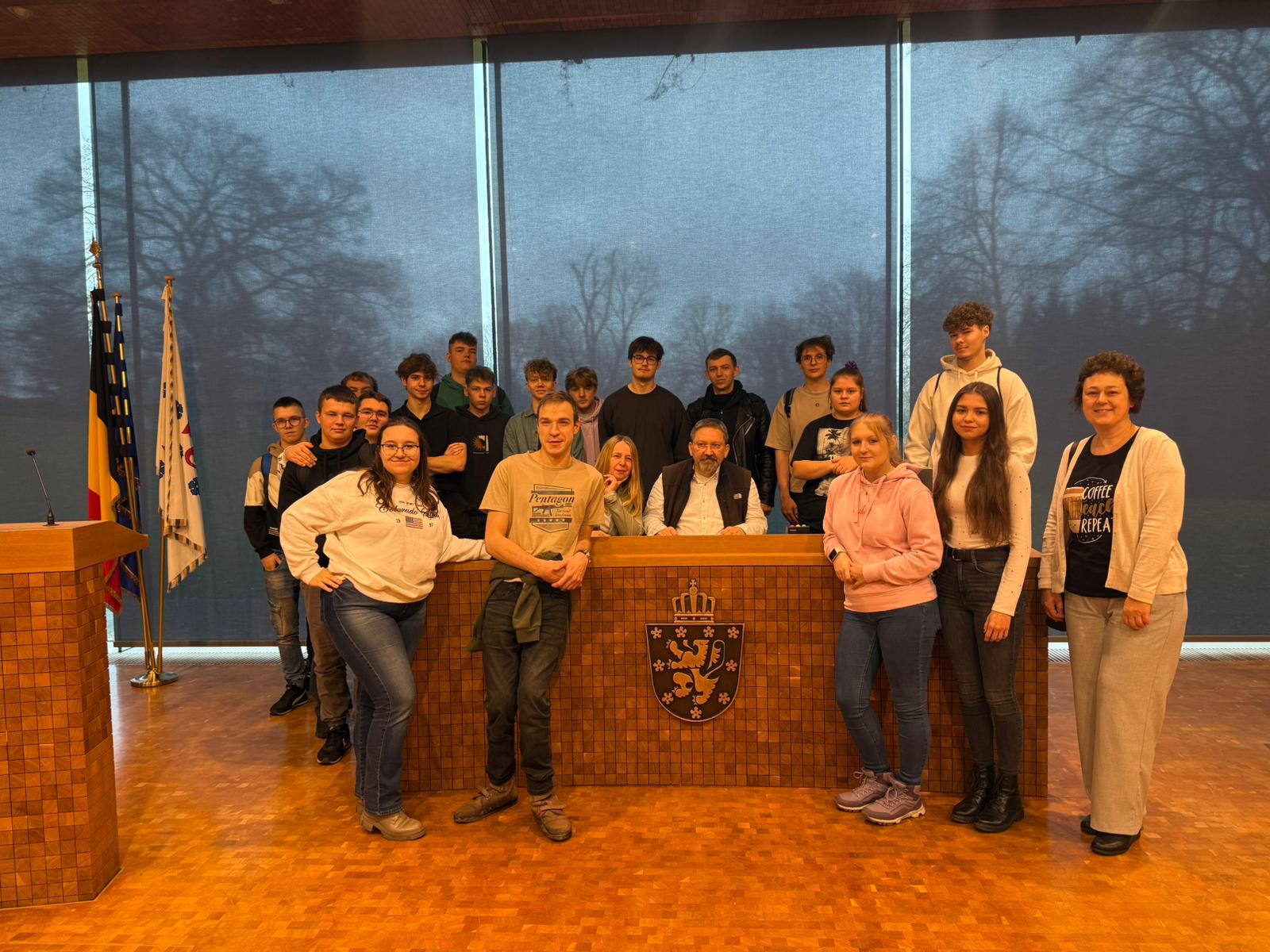 W środę cały dzień grupa spędziła na wyjazdach. Rano odwiedziliśmy region Eupen w Belgii, gdzie na stosunkowo zwartym terenie, który obejmuje osiem gmin, mieszka około 80 000 Belgów pochodzenia niemieckiego (Deutschsprachige Gemeinschaft). Niemieckojęzyczna Wspólnota Belgii na tym terenie ma własny, regionalny parlament, budżet oraz rząd regionalny, które decydują o wielu lokalnych sprawach. Grupa zwiedziła tenże parlament, dowiedziała się wielu rzeczy o jego działalności, pracy parlamentarnej, kompetencjach lokalnych i partiach politycznych działających na tym terenie.